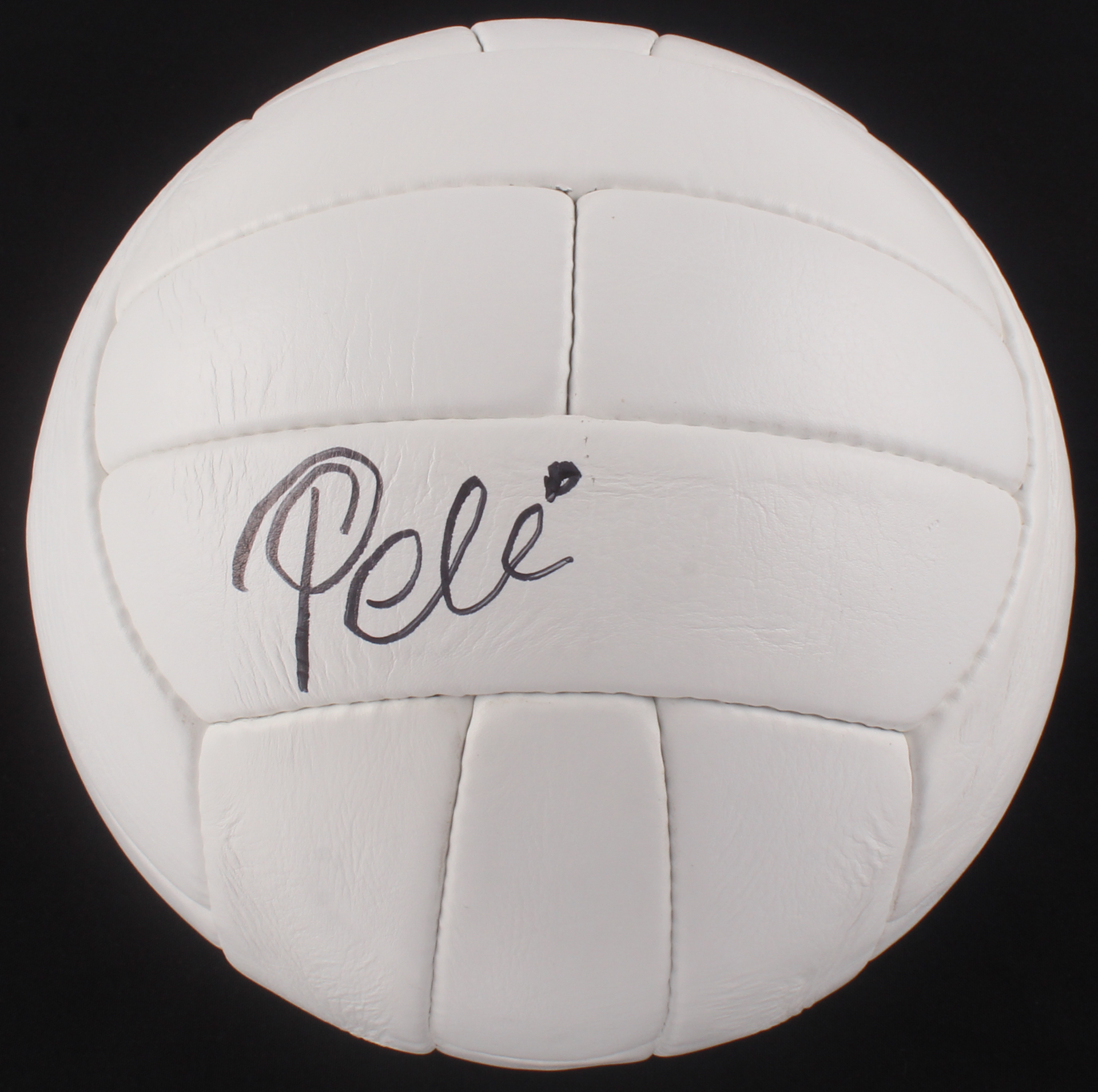 The full-size throwback replica soccer ball has been hand-signed in black felt-tip pen by Pele.