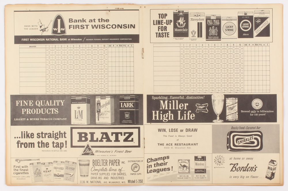 Vintage 1965 Milwaukee Braves Program with Scorecard