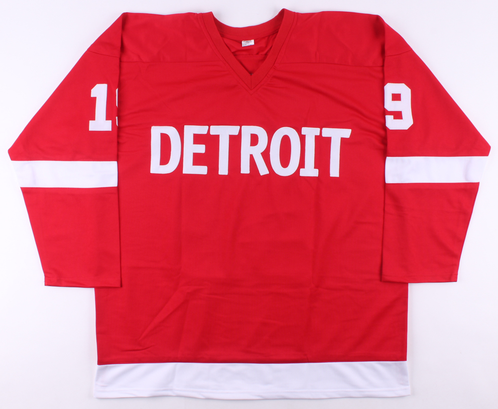 Custom on-ice style jersey. Everything is sewn on, size XL. Hand-signed in black felt-tip pen by Steve Yzerman (HOF).