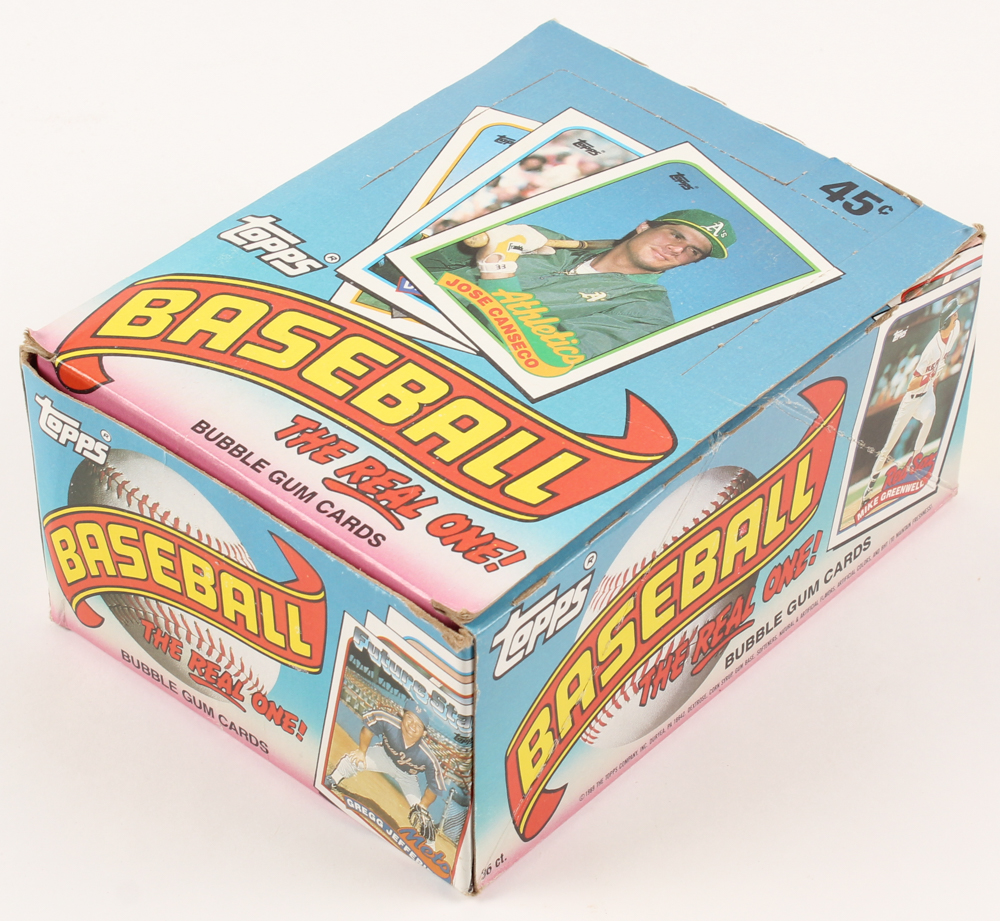 1989 Topps "The Real One" Bubble Gum Baseball Card Box. Box includes (36) packs, (17) cards and (1) bubble gum stick per pack. Please see photos for more details regarding the condition of the box.