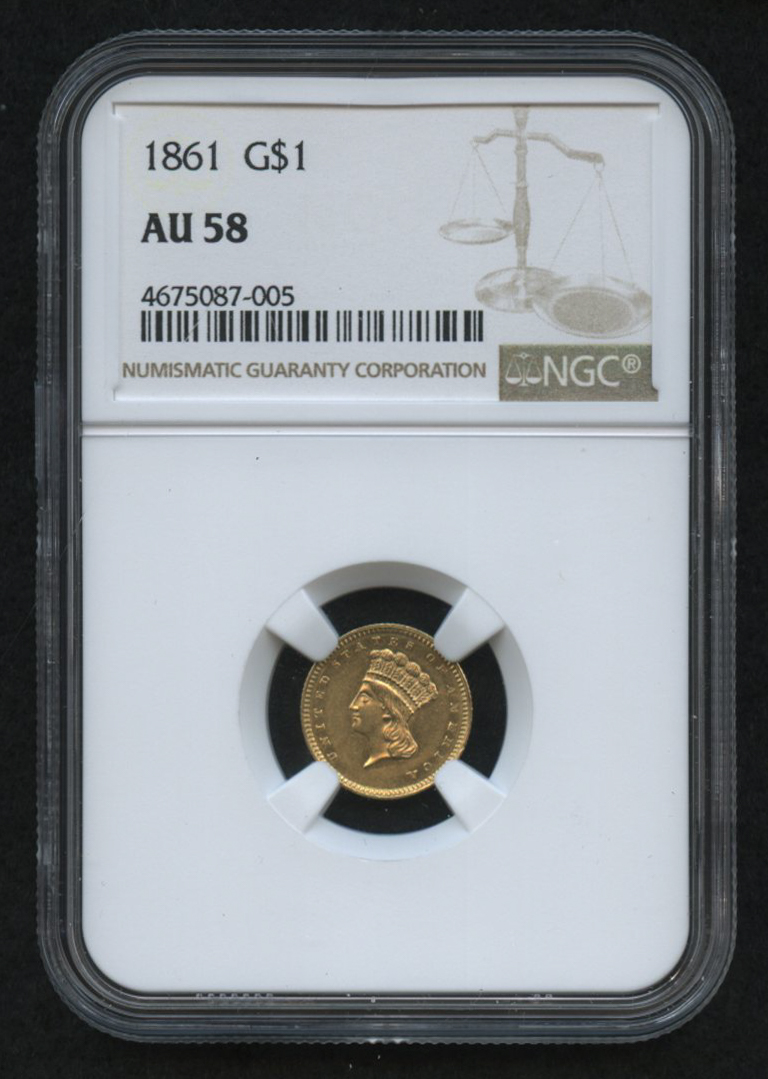 1861 $1 Indian Princess Gold Coin (NGC AU 58)