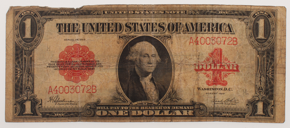 1923 $1 One Dollar Red Seal Large Size Legal Tender Bank Note Bill