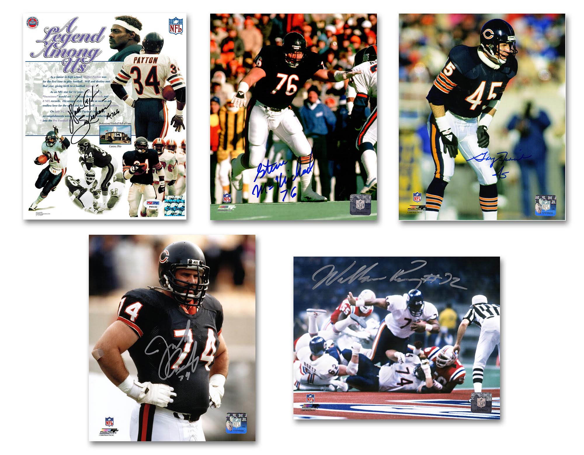 Other Autographs include Wilber Marshall, Gary Fencik, Jay Hilgenberg, Willie Gault, Leslie Frazier, Jim Covert, Steve Fuller, Tom Thayer, Kevin Butler, Otis Wilson, Steve McMichael and MANY MORE!!
