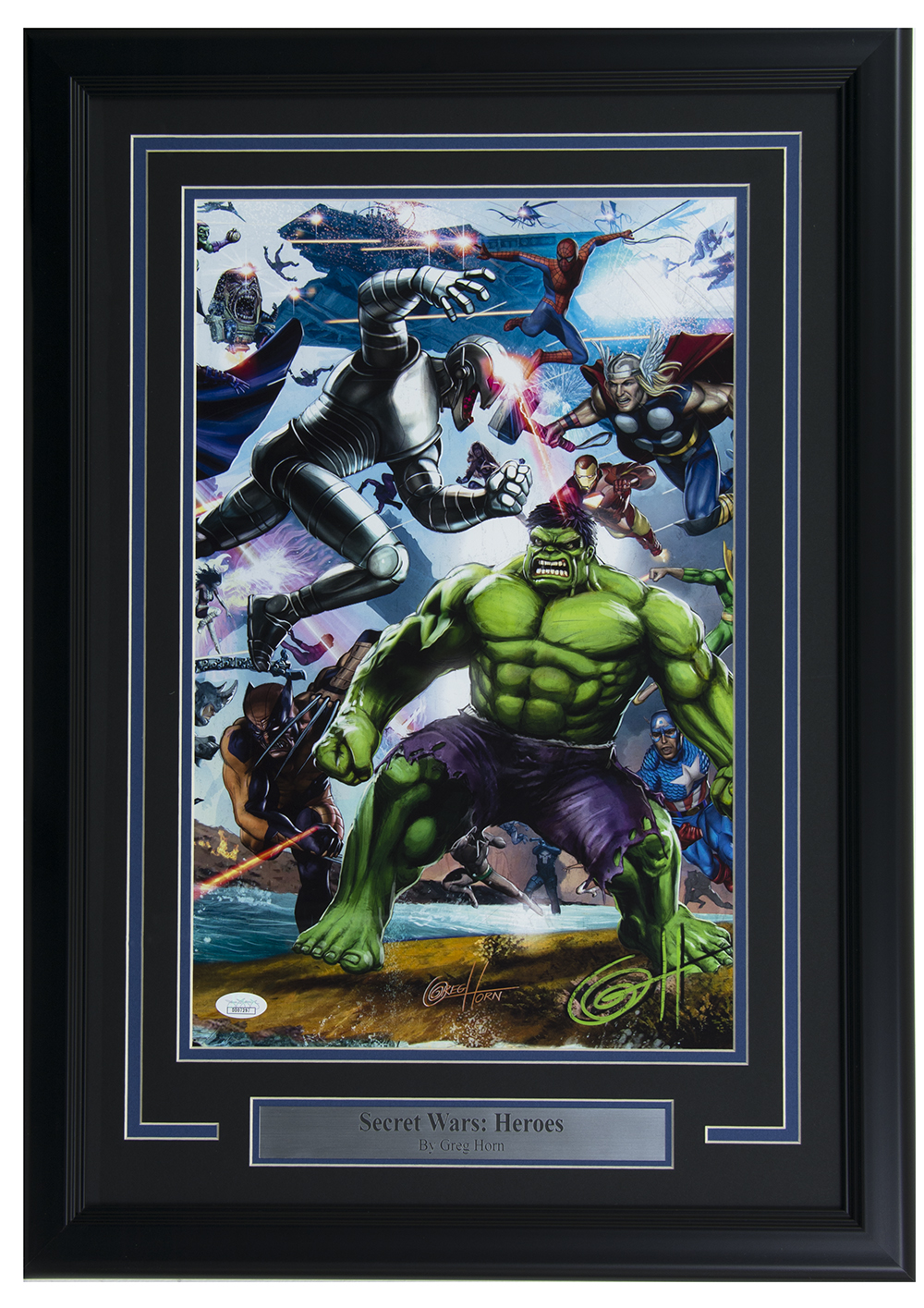 Greg Horn Signed "Marvel Secret Wars: Heroes" 17x25 Custom Framed Lithograph Display (JSA COA)