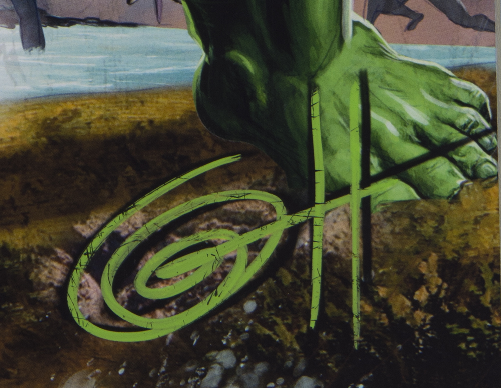 Custom framed lithograph measures approximately 17" x 25" in size and has been hand-signed in green paint pen by Greg Horn. (Artist)