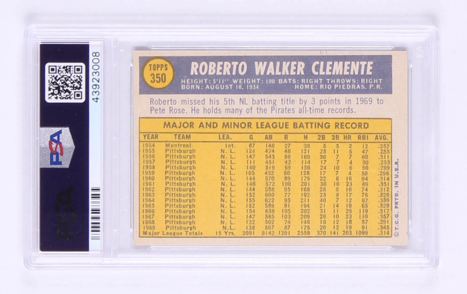 1970 Topps #350 Roberto Clemente (PSA 6)