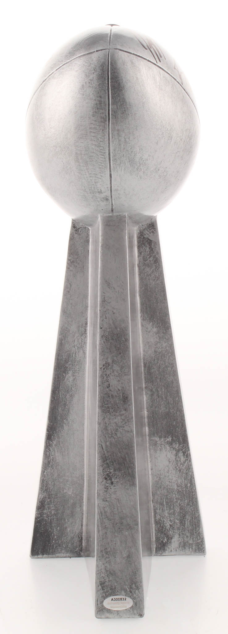Replica Lombardi trophy measures approximately 15" in size and has been hand-signed in black felt-tip pen by (28) including Phil Simms, Lawrence Taylor, Jeff Hostetler, Mark Bavaro, Leonard Marshall, Carl Banks, Pepper Johnson, Ottis Anderson, Bart Oates, Perry Williams, Lionel Manuel, Raul Allegre, Eric Dorsey, Mark Collins, William Roberts, Gary Reasons, Joe Morris, Jim Burt, Jeff Rutledge, Terry Kinard, George Martin, Elvis Patterson, Kenny Hill, Tony Galbreath, Stephen Baker, Rodney Hampton, Matt Bahr and Everson Walls.