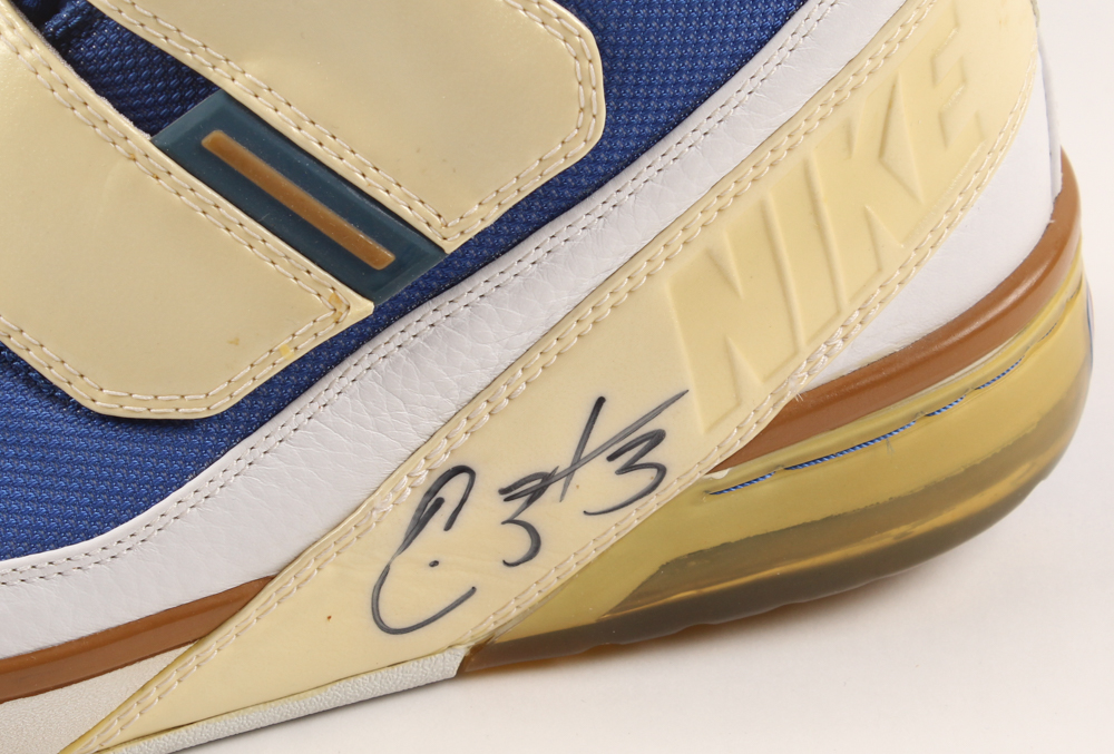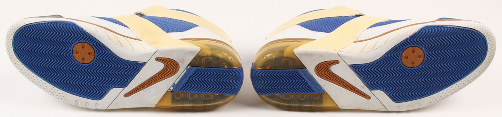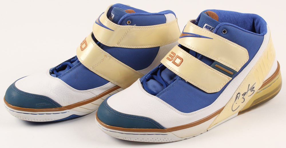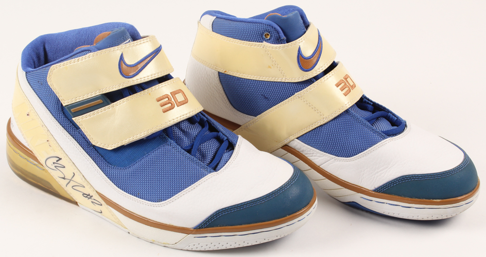 Pair of Nike basketball shoes size 14. Both shoes have been hand-signed in black felt-tip pen and game-used by Caron Butler (Washington Wizards).