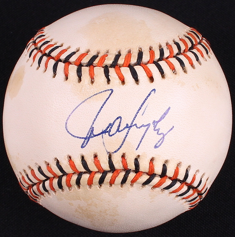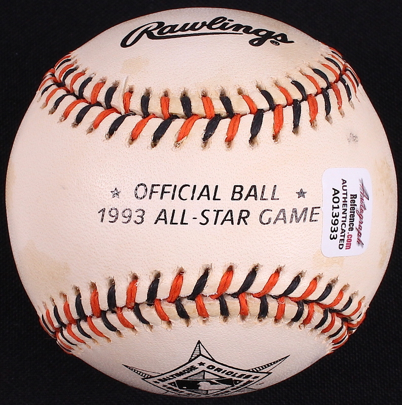 Official 1993 All Star Game Baseball hand-signed on the sweet spot in blue ink pen by Juan Gonzalez (Rangers). The autograph includes an official Autograph Reference hologram and matching COA for authenticity purposes.