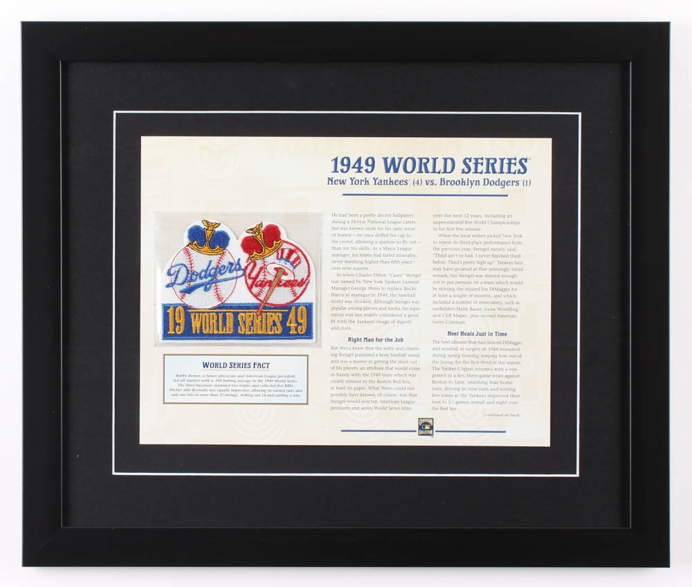 1949 World Series New York Yankees Vs. Brooklyn Dodgers Cooperstown Collection Patch 16x19 Custom Framed Display