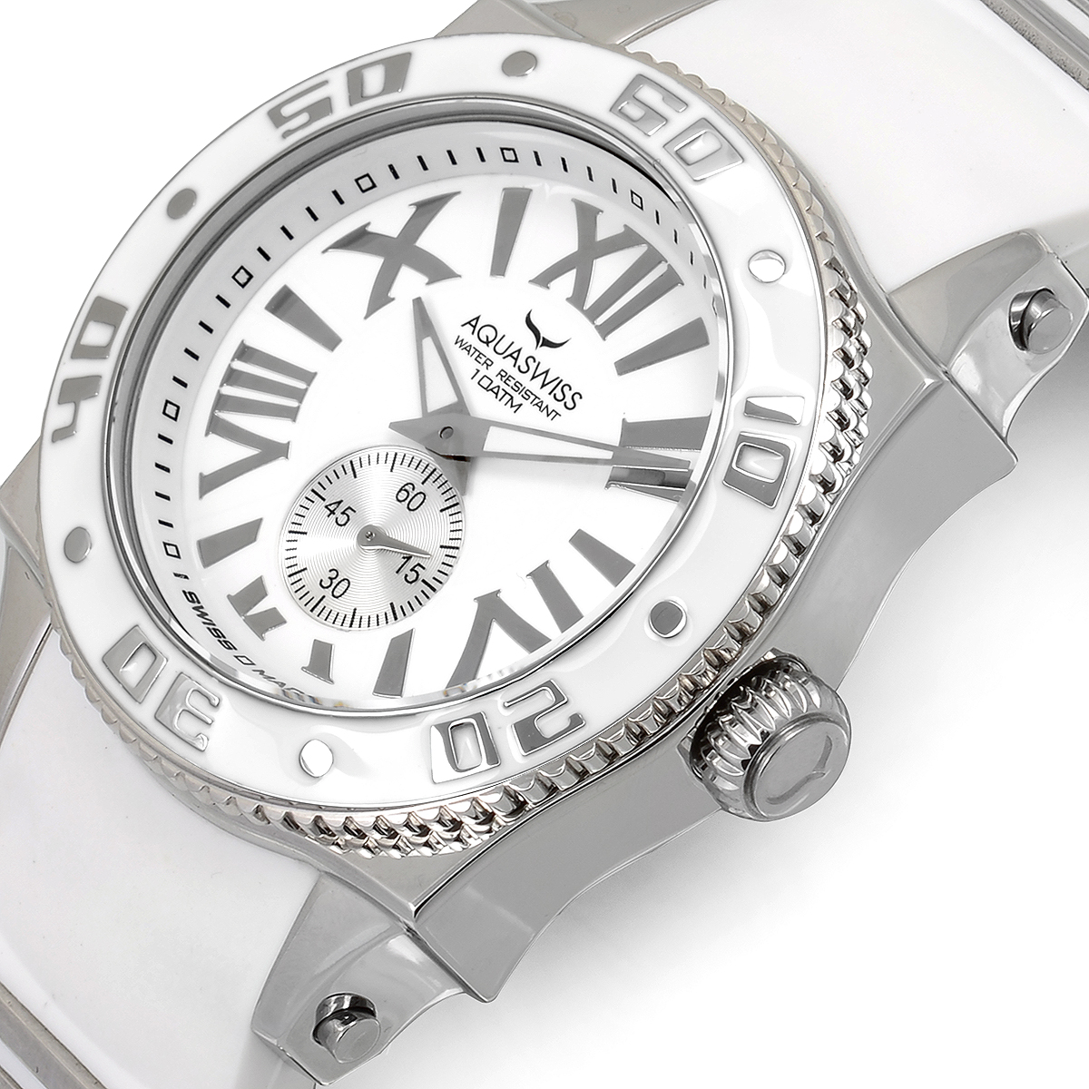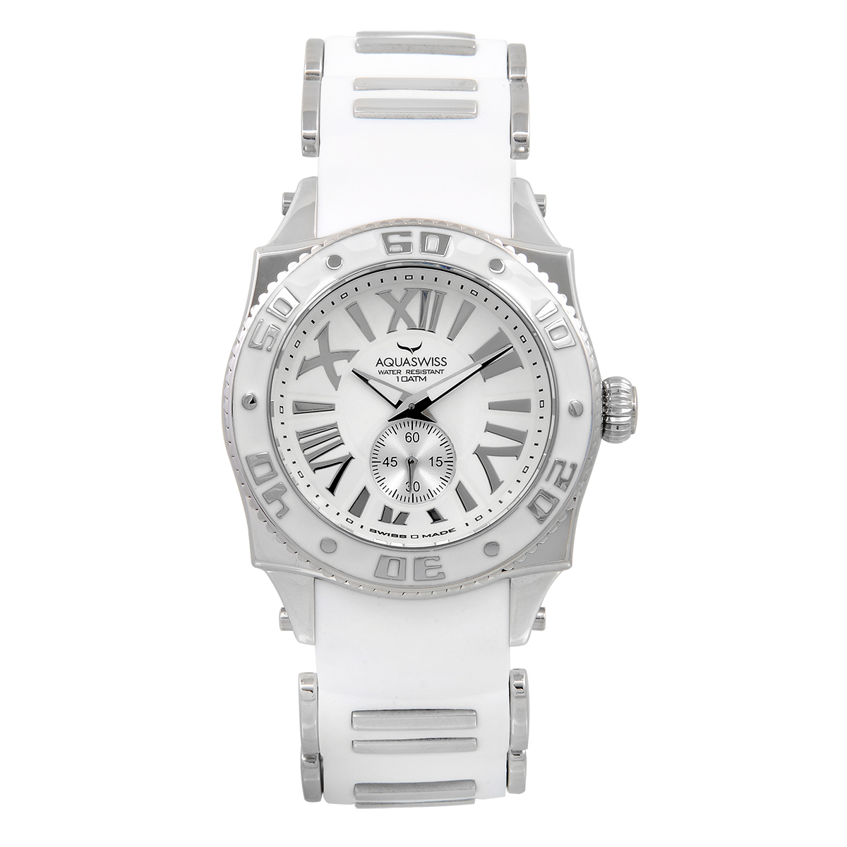 Introducing the AQUASWISS Collection, stunning watches that can be worn for sport, casual, or dress. All AQUASWISS timepieces are water resistant up to 10 ATM (330 feet). All AQUASWISS watches come with Swiss movements. This AQUASWISS watch is BRAND NEW and comes in its original box with owners manual and 2 year warranty (from Manufacturer). AQUASWISS watches are truly high-quality timepieces. (All weights, measurements, and colors are approximate and may vary slightly from the listed dimensions or as seen in the image).