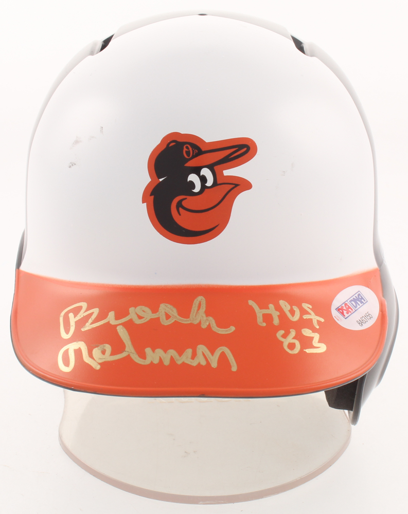 Brooks Robinson Signed Baltimore Orioles Batting Mini Helmet With Wood Base Display Case Inscribed "HOF 83" (PSA COA)