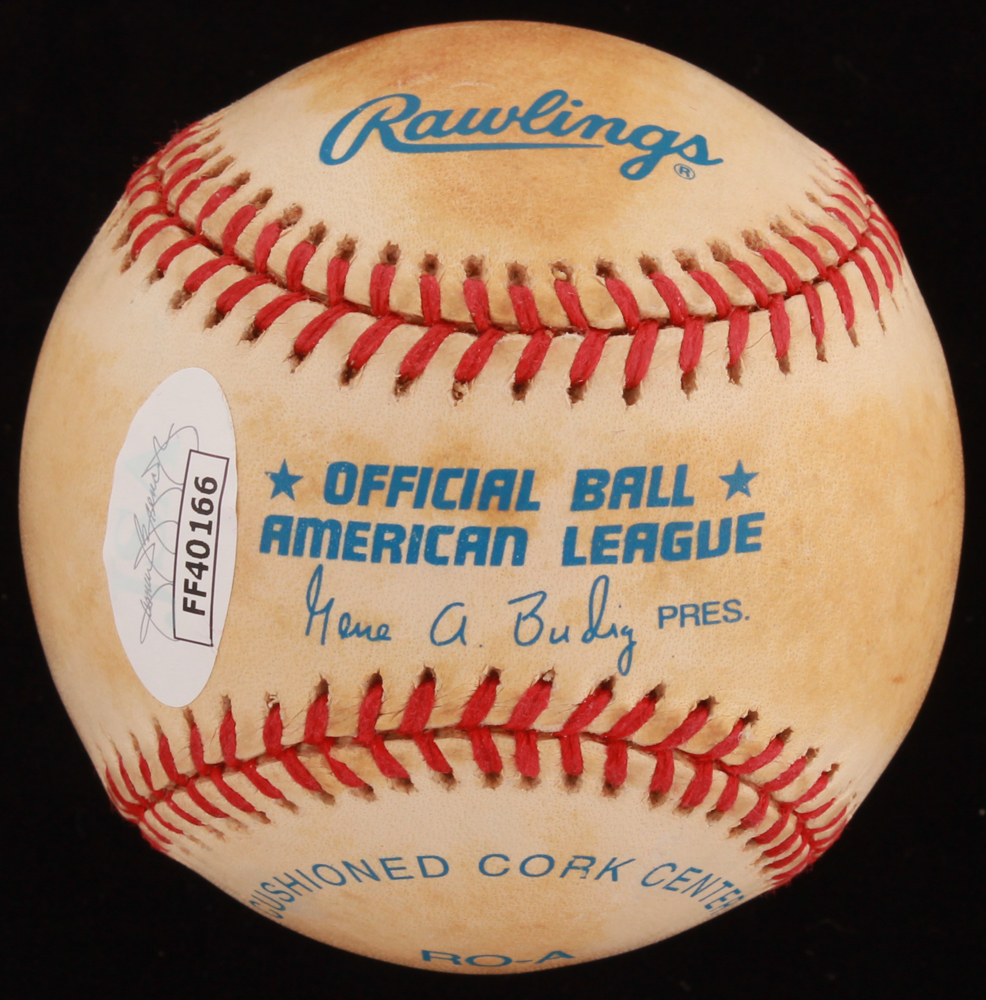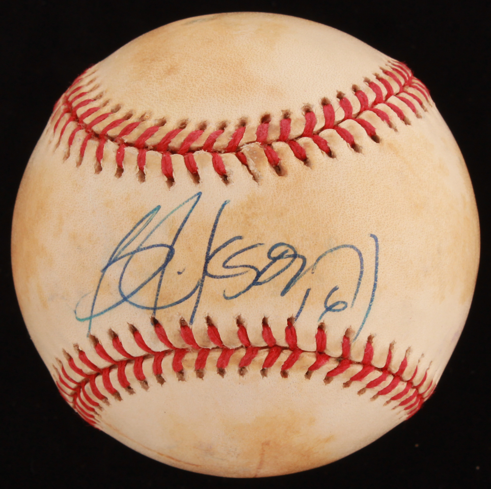 Rawlings Official American League Baseball. Hand-signed in blue ink pen by Bo Jackson (Kansas City Royals). Please see photos for details regarding the condition of the baseball.