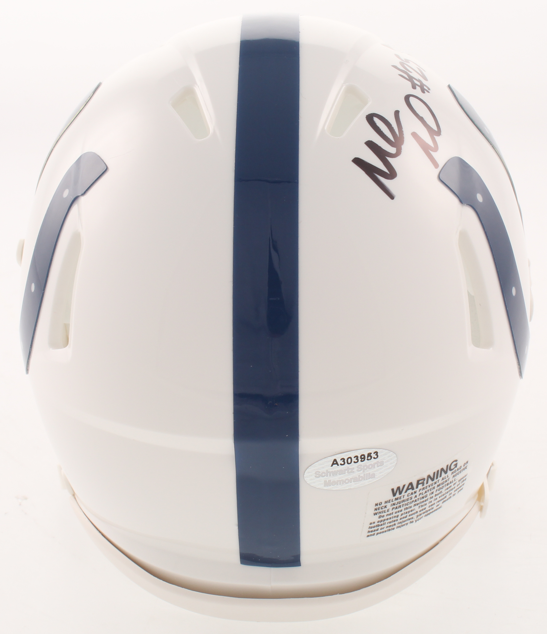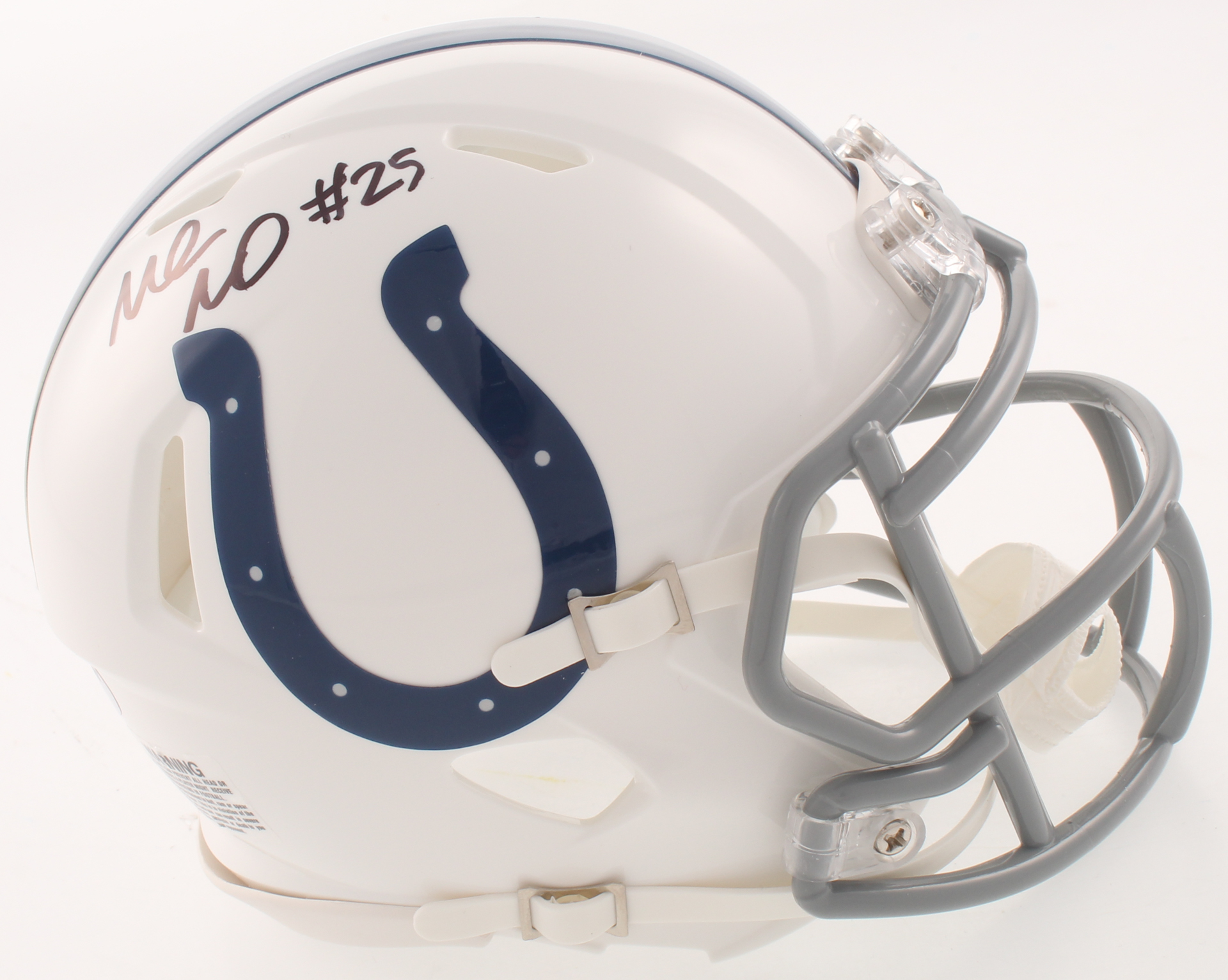 Riddell Indianapolis Colts speed mini helmet. Hand-signed in black felt-tip pen by Marlon Mack.