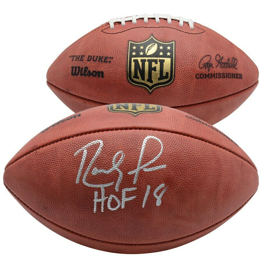 This football has been personally hand-signed by Randy Moss with the inscription "HOF 18." It is officially licensed by the National Football League and comes with an individually numbered, tamper-evident hologram from Fanatics Authentic. To ensure authenticity, the hologram can be reviewed online. This process helps to ensure that the product purchased is authentic and eliminates any possibility of duplication or fraud.
