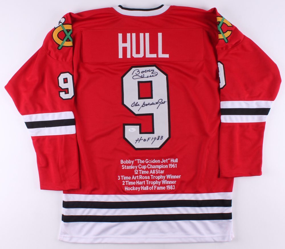 Bobby Hull Signed Career Highlight Stat Jersey Inscribed "The Golden Jet" & "HOF 1983" (JSA COA)