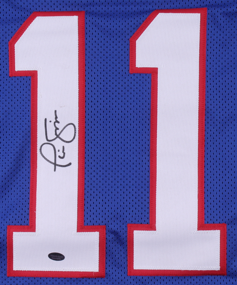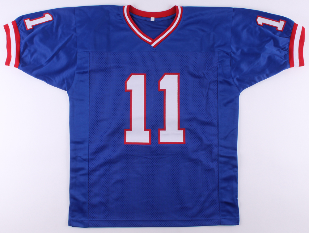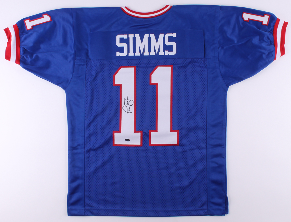 Custom on-field style jersey. Everything is sewn on, size XL. Hand-signed in black felt-tip pen by Phil Simms. Please see photos for details.