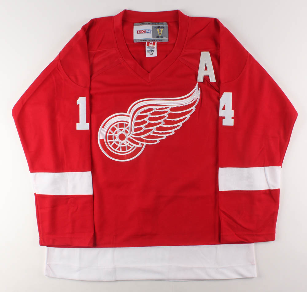 CCM Detroit Red Wings on-ice style jersey. Everything is sewn on, size 52. Hand-signed and inscribed in black felt-tip pen by Brendan Shanahan (HOF).