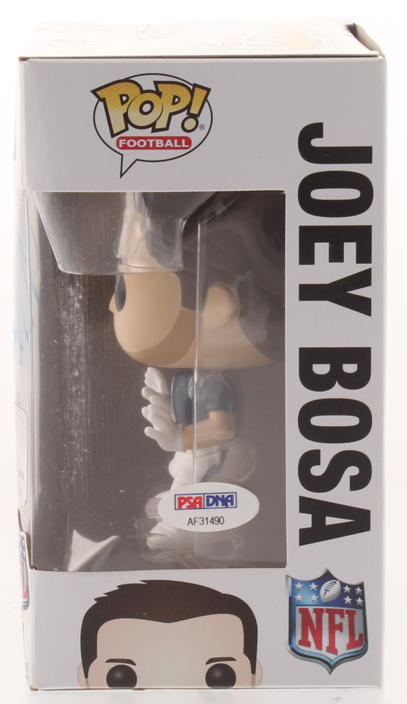 Funko Pop! vinyl figure measures approximately 4" in height. Hand-signed in blue paint pen by Joey Bosa.