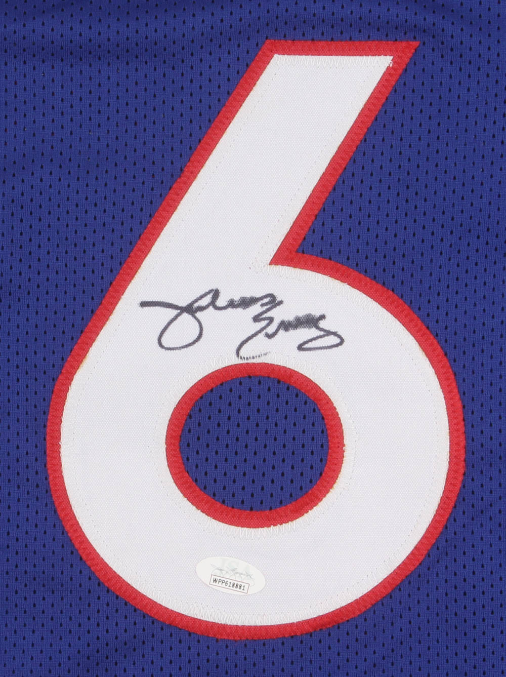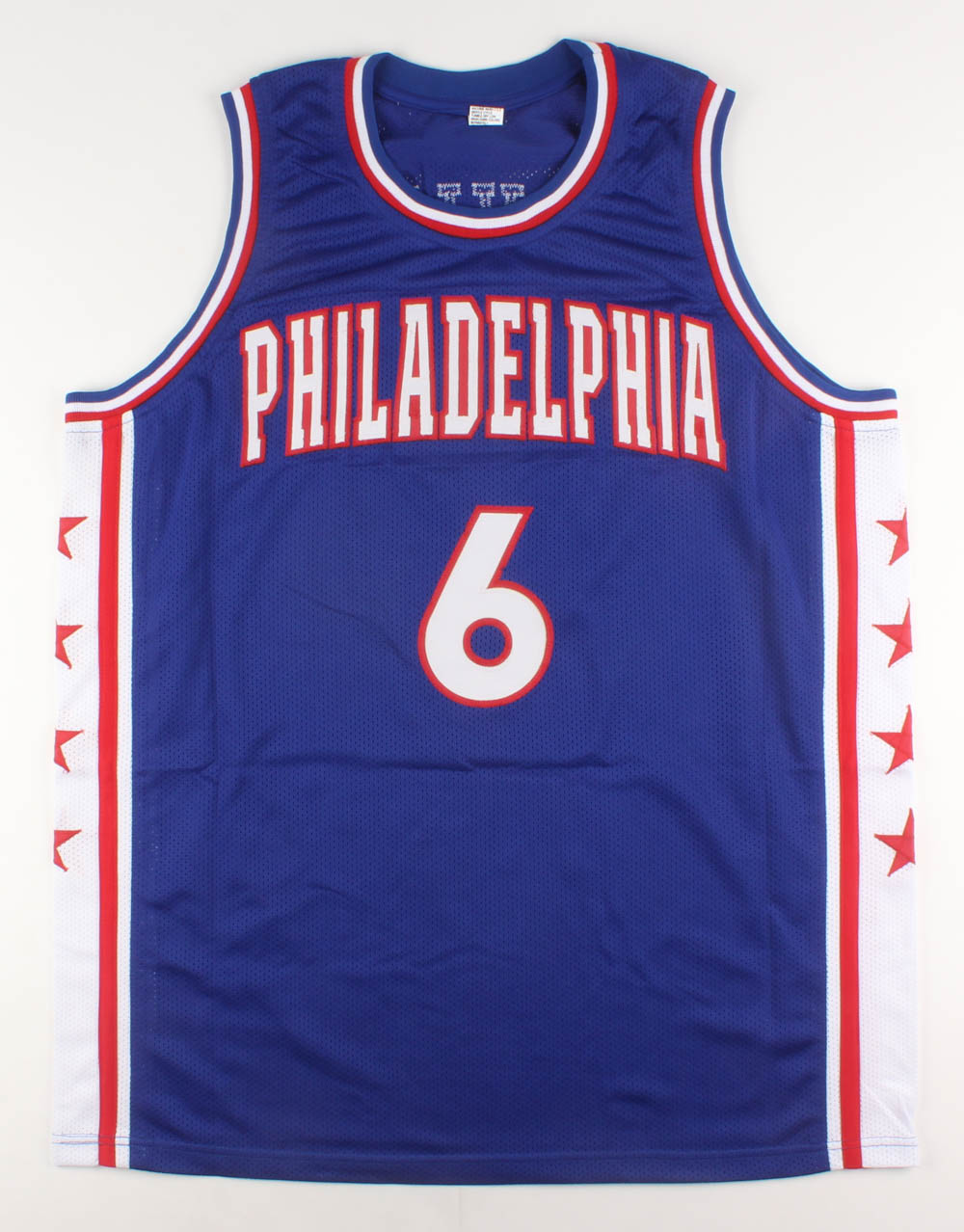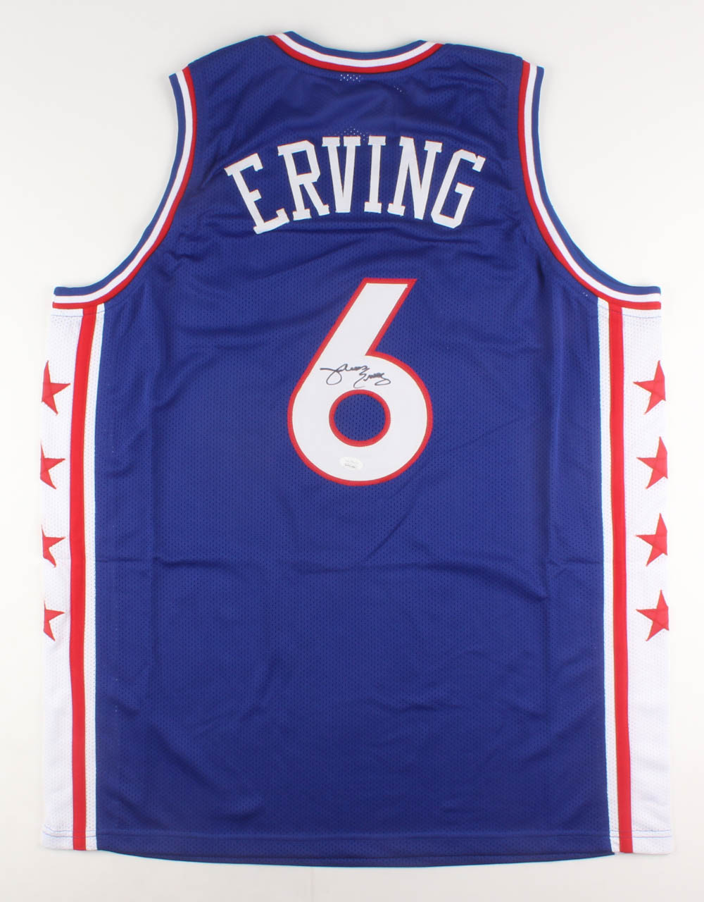 Custom on-court style jersey. Everything is sewn on, size XL. Hand-signed in black felt-tip pen by Julius Erving (HOF).