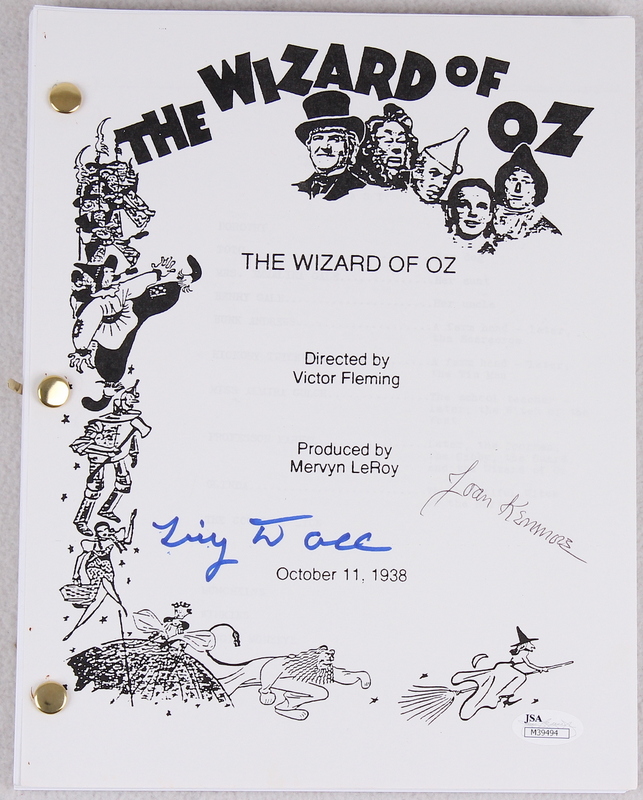 Script has been hand-signed on the cover in blue felt-tip pen by Tiny Doll and black ink pen by Joan Kenmore ("Munchkins"). The autographs include an official James Spence Authentication (JSA) hologram and matching COA for authenticity purposes.