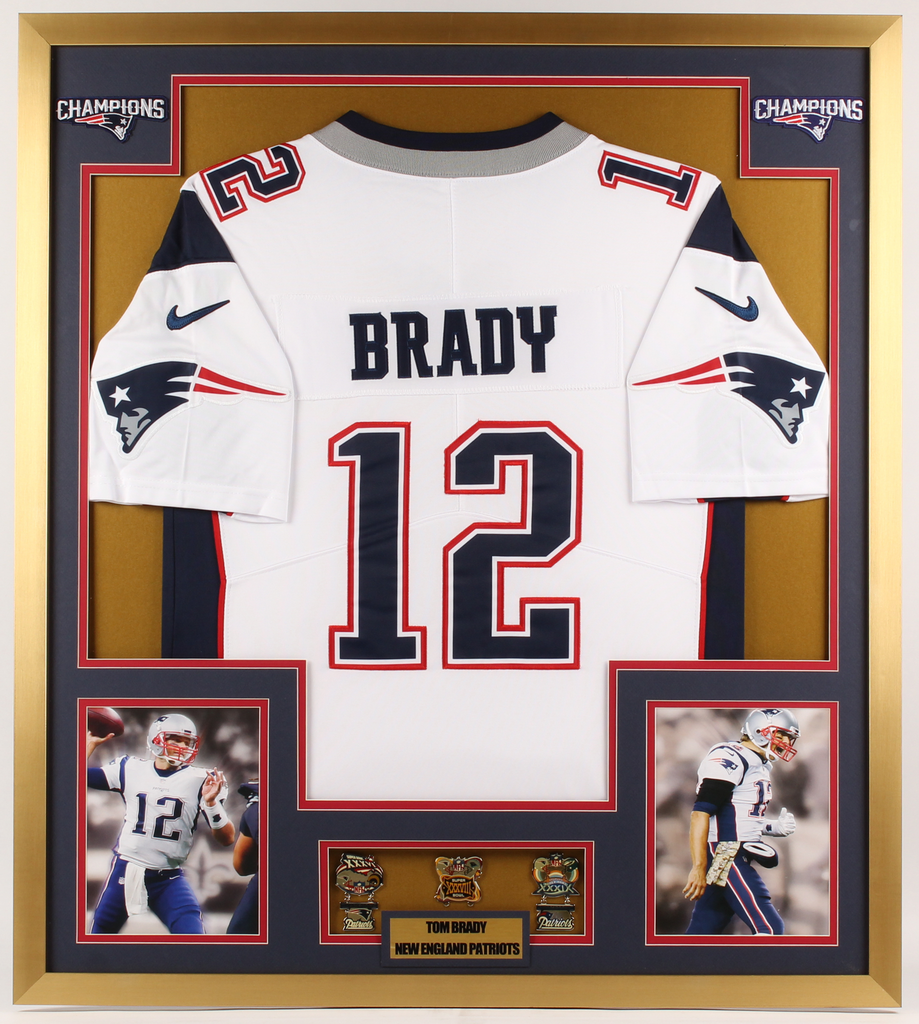 Tom Brady New England Patriots 32x36 Custom Framed Jersey Display with Championship Pins