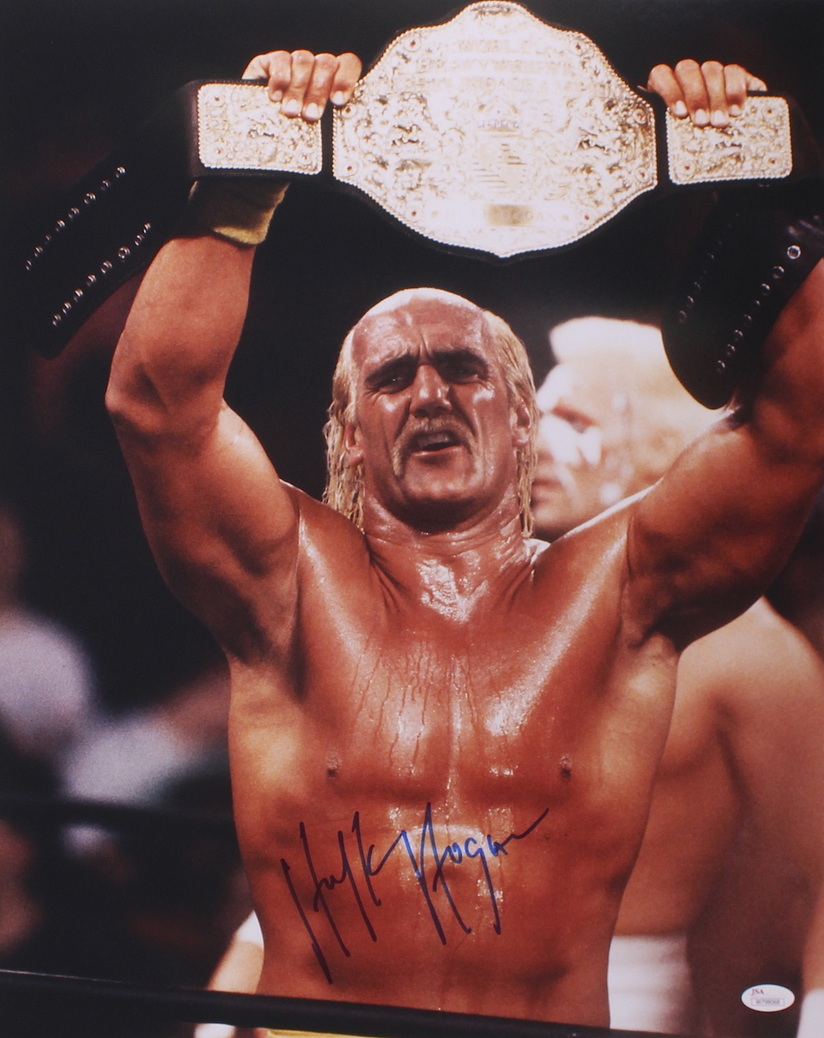 Hulk Hogan Signed WWF 16x20 Photo with Championship Belt (JSA COA)