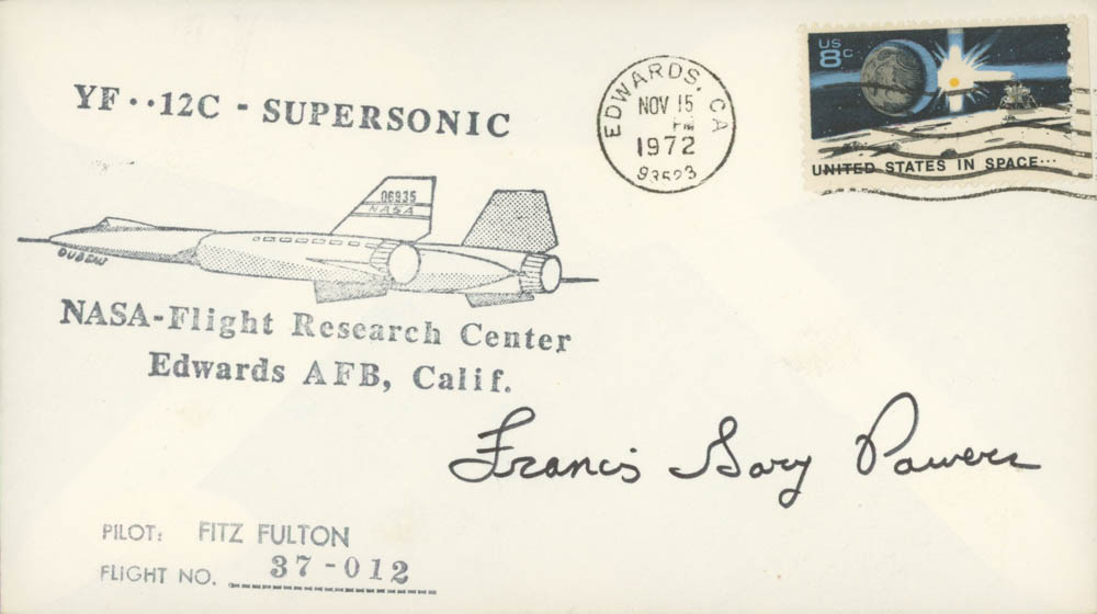 The envelope is postmarked on Nov 15, 1972, and has been hand-signed in black ink pen by Francis Gary Powers (D.1972).