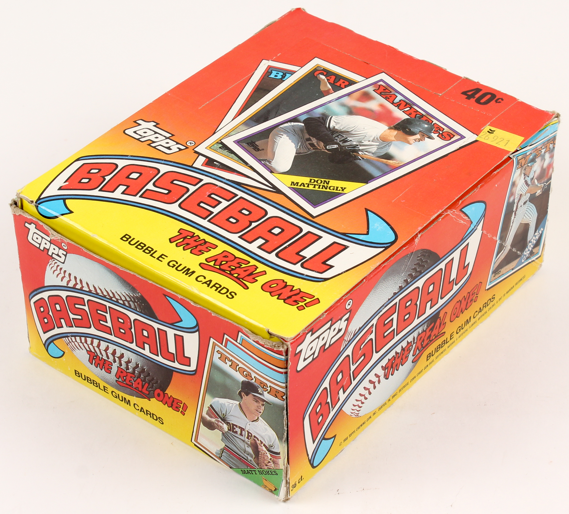 1988 Topps "The Real One" Bubble Gum Baseball Card Box. Box includes (36) packs, (17) cards and (1) bubble gum stick per pack. Please see photos for more details regarding the condition of the box.