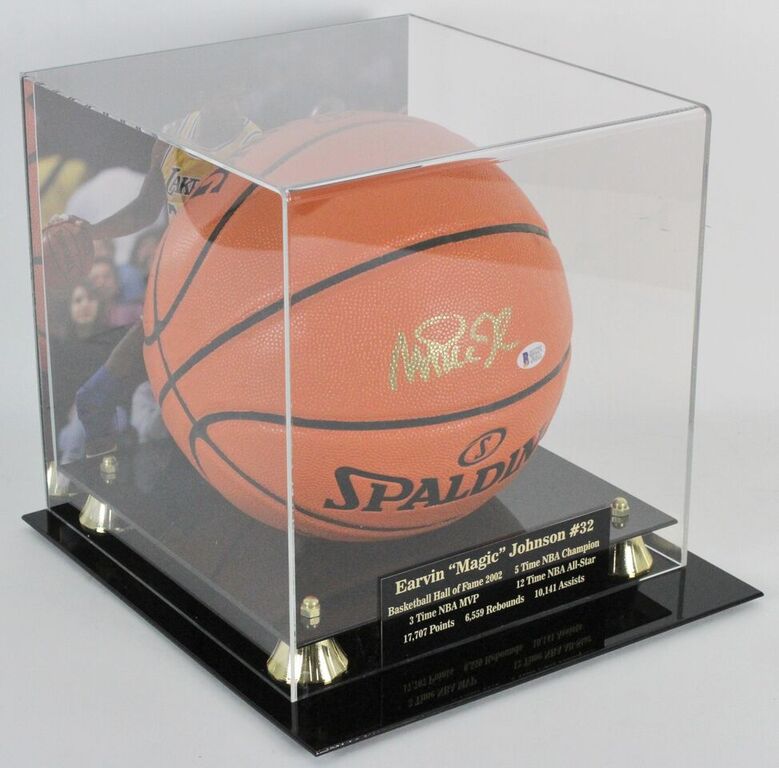 Magic Johnson Signed NBA Game Ball Series Basketball with Display Case (Beckett COA)
