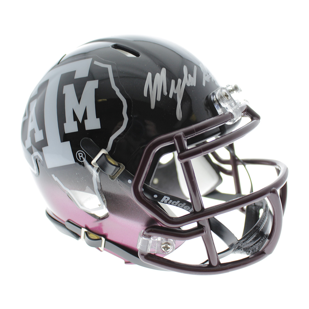 Riddell Texas A&M Aggies Hydro Dipped speed mini helmet has been hand-signed in silver paint pen by Myles Garrett (Cleveland Browns).