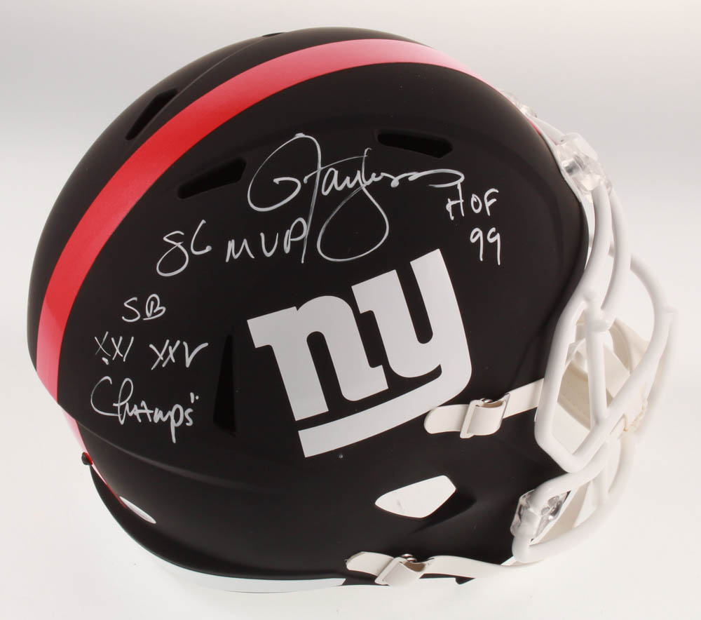 Riddell New York Giants full-size replica matte black speed helmet. Hand-signed by Lawrence Taylor (HOF).
