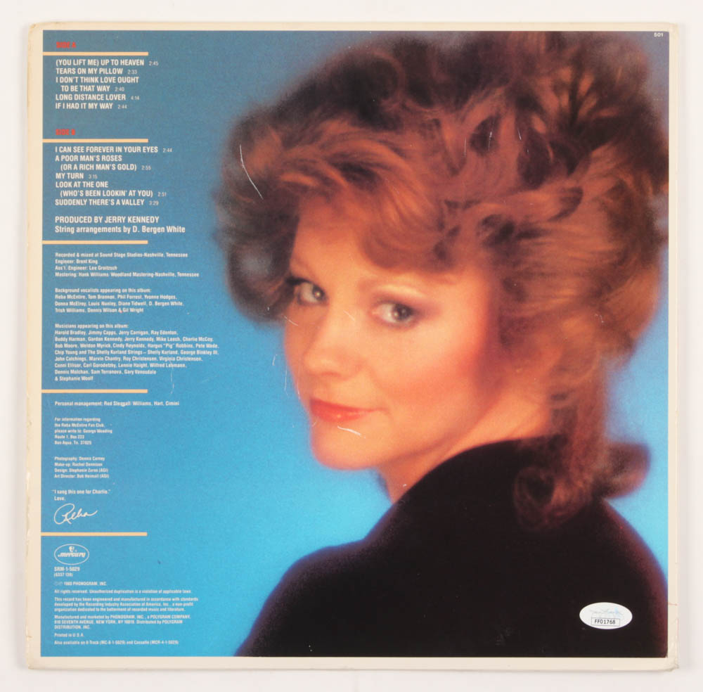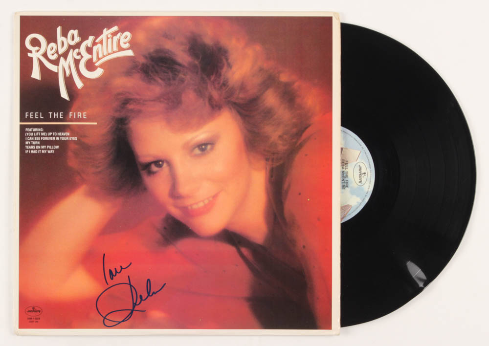 "Feel the Fire" vinyl record album has been hand-signed in blue felt-tip pen by Reba McEntire. Please note, the vinyl record is included. Please see photos for details regarding the condition of the vinyl record.