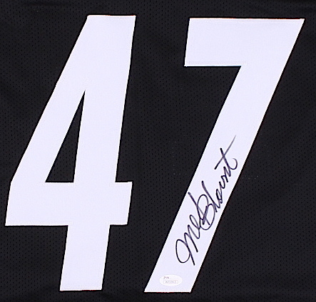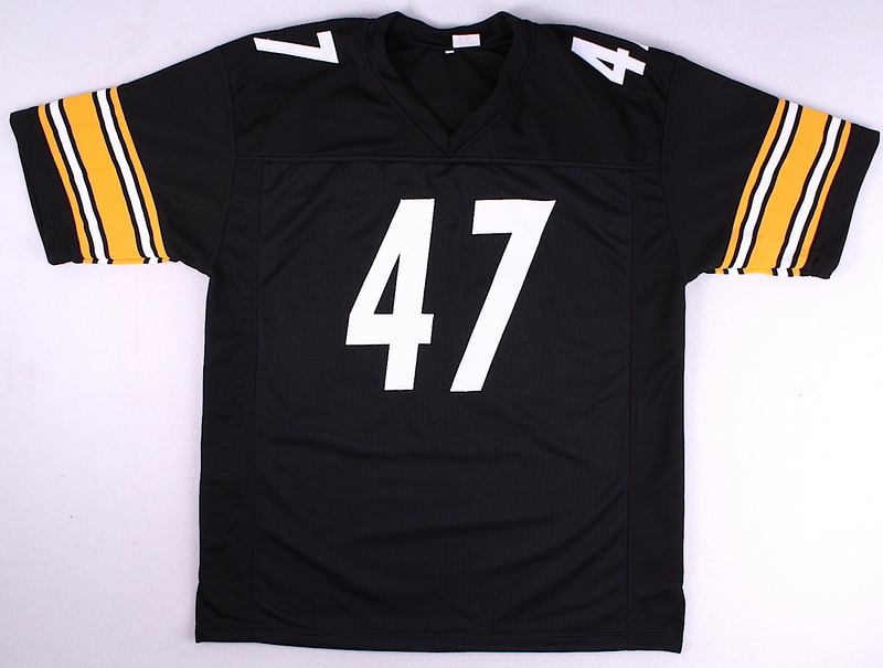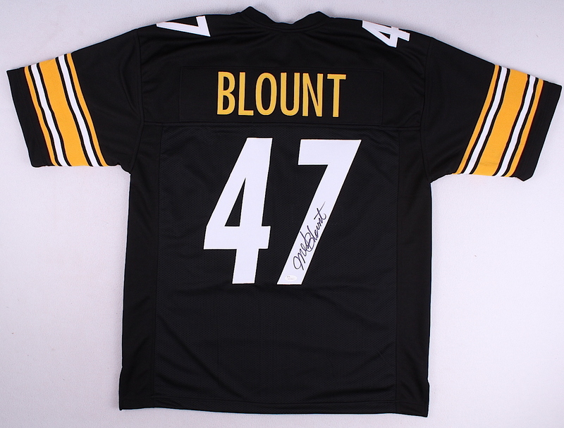 Custom on-field style jersey. Everything is sewn on, size XL. Hand-signed in black felt tip pen by Mel Blount. The autograph includes an official James Spence Authentication (JSA) hologram and matching COA for authenticity purposes. The signing of this item was witnessed by JSA.