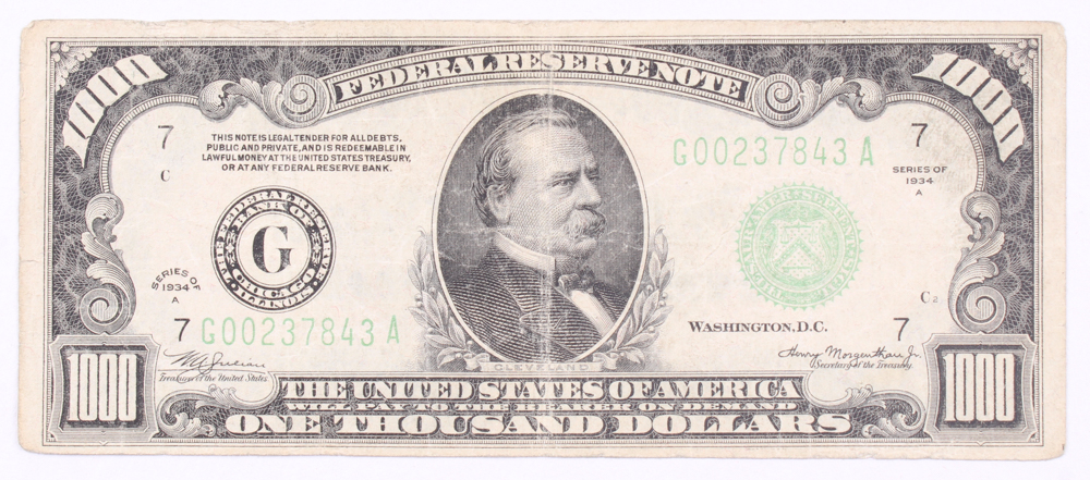 1934-A $1000 One Thousand Dollars Federal Reserve Note