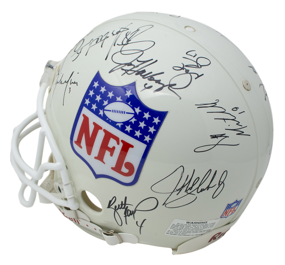 NFL Quarterback Greats Full-Size Authentic On-Field Helmet Signed By (13) Including Jim Kelly, Brett Favre, John Elway (Beckett LOA)