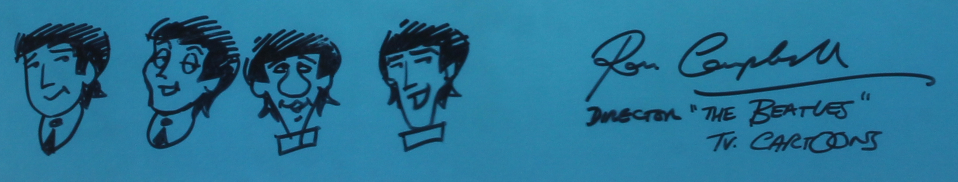 Ron Campbell, born December 26, 1939 (age 80 years), Seymour, Australia is the only animator in America to have directed and animated on both the Beatles Saturday Morning TV Series and the feature film, The Beatles Yellow Submarine. Mr. Campbell has been a force in animation for over 40 years, working with such studios as Disney, Hanna-Barbera, Klasky-Csupo, to name just a few. His studio produced the animation for The Big Blue Marble, an international children's TV show, winning an Emmy and a George Foster Peabody Broadcasting Award. The Saturday Morning Beatles series aired 78 episodes and ran from September 25, 1965 to April 20, 1969. Each show featured two episodes and a Ringo Sing-along. In 1986 and 1987, the series was rebroadcast on MTV. The show was animated in Australia, Canada and England. The Beatles, “Known as the Fab Four ”John Lennon, Paul McCartney, George Harrison and Ringo Starr were an English rock band, formed in Liverpool in 1960. They became widely regarded as the foremost and most influential act of the rock era. The Beatles are the best-selling band in history, with estimated sales of over 600 million records worldwide.