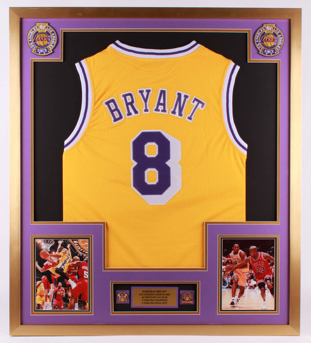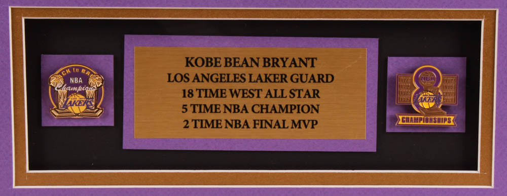 Kobe Bryant Los Angeles Lakers 32x36 Custom Framed Jersey with (2) Championship Pins