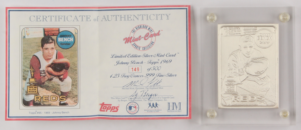 Johnny Bench's card is a limited edition and is numbered 149 out of 500 total. Please see the photos for details regarding the condition of the card. (Cincinnati Reds)