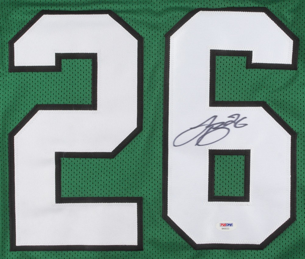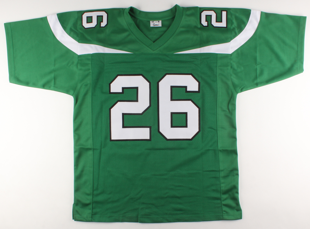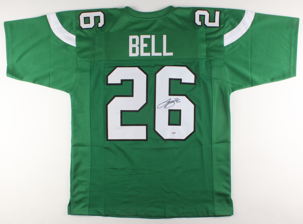 Custom on-field style jersey. Everything is sewn on, size XL. Hand-signed in black felt-tip pen by Le'Veon Bell.