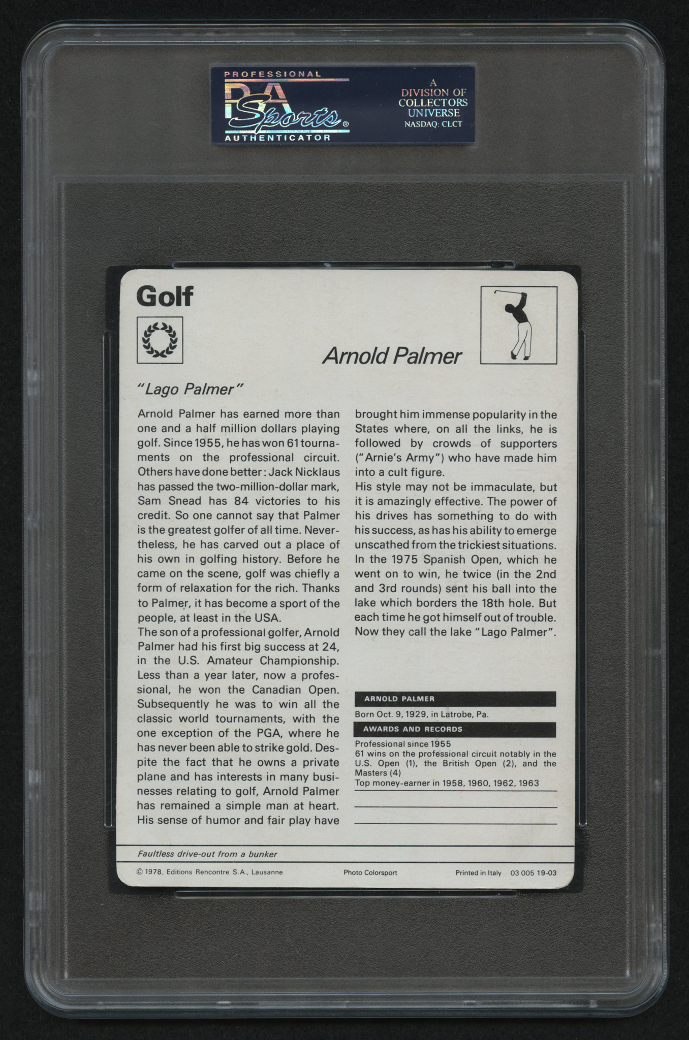 Arnold Palmer Signed 1977-79 Sportscaster Card (PSA Encapsulated)