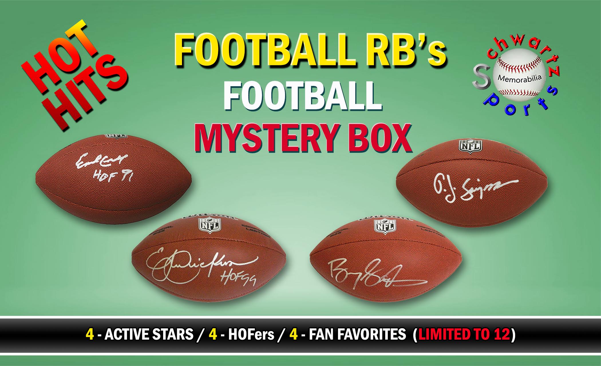 Schwartz Sports Hot Hits - Football Running Backs Signed Full Size Football Mystery Box – Series 1 (Limited to 12)