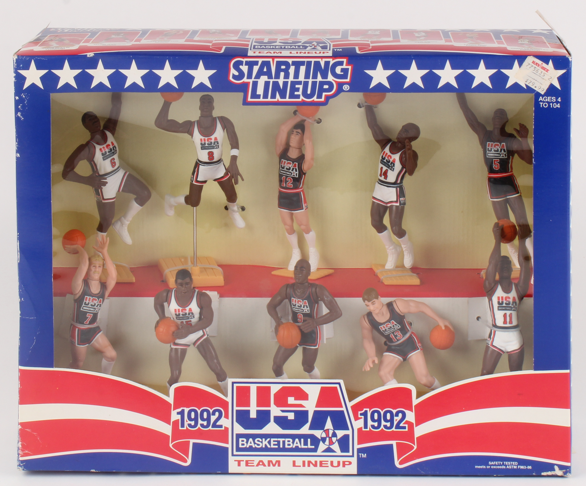 1992 "Dream Team" USA Basketball Starting Lineup Team Action Figures in original packaging. Each figure measures 4". Please see photos regarding the condition of the item.
