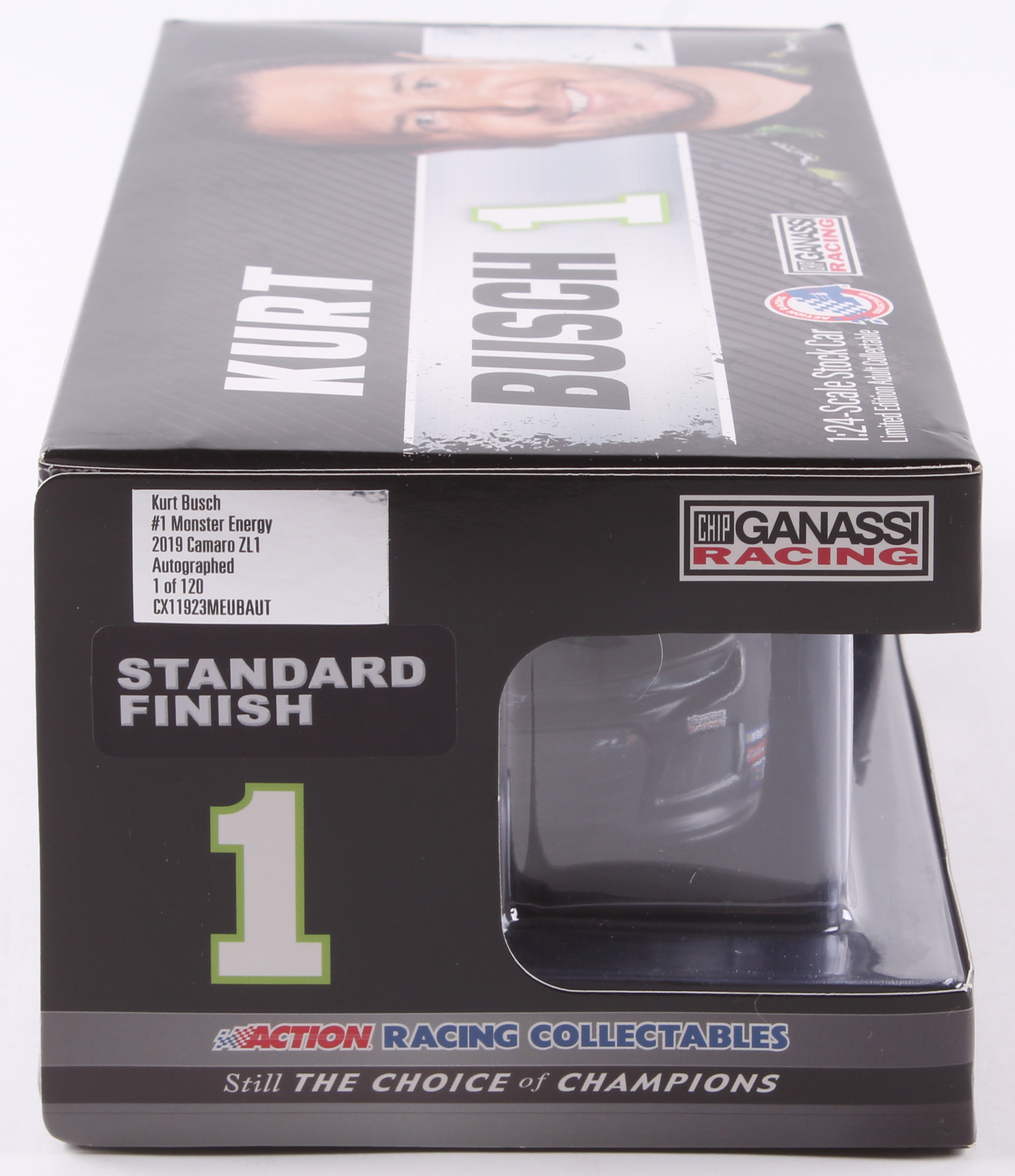 Kurt Busch Signed NASCAR #1 Monster Energy 2019 Camaro ZL1 - 1:24 Premium Action Diecast Car (Action COA)