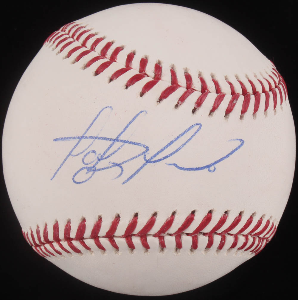 Rawlings Official Major League Baseball. Hand-signed in blue ink pen by Fernando Tatis Jr. (San Diego Padres). Please note, baseball shows minor signs of natural toning.