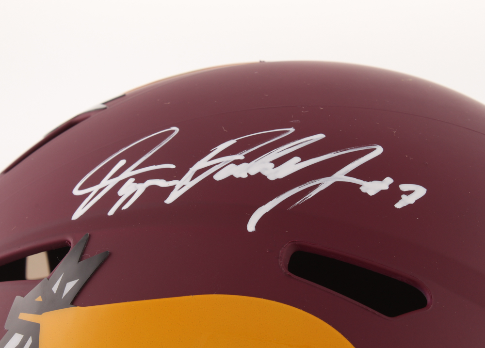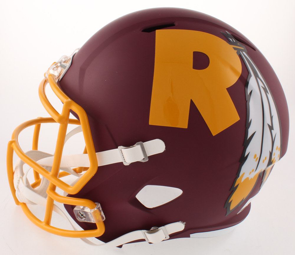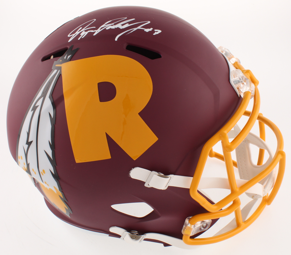 Riddell Washington Redskins full-size replica AMP Alternate speed helmet. Hand-signed in white paint pen by Dwayne Haskins.