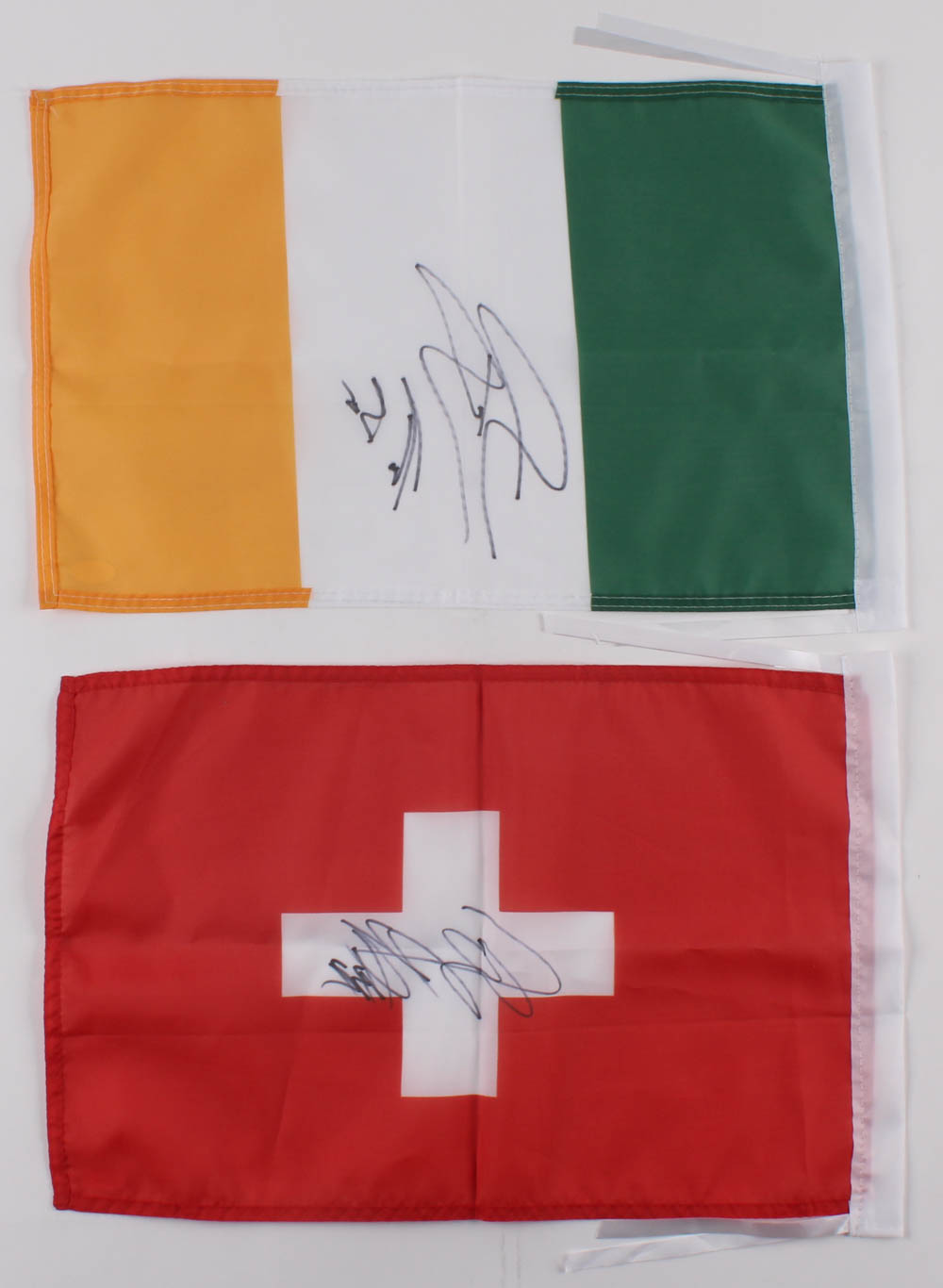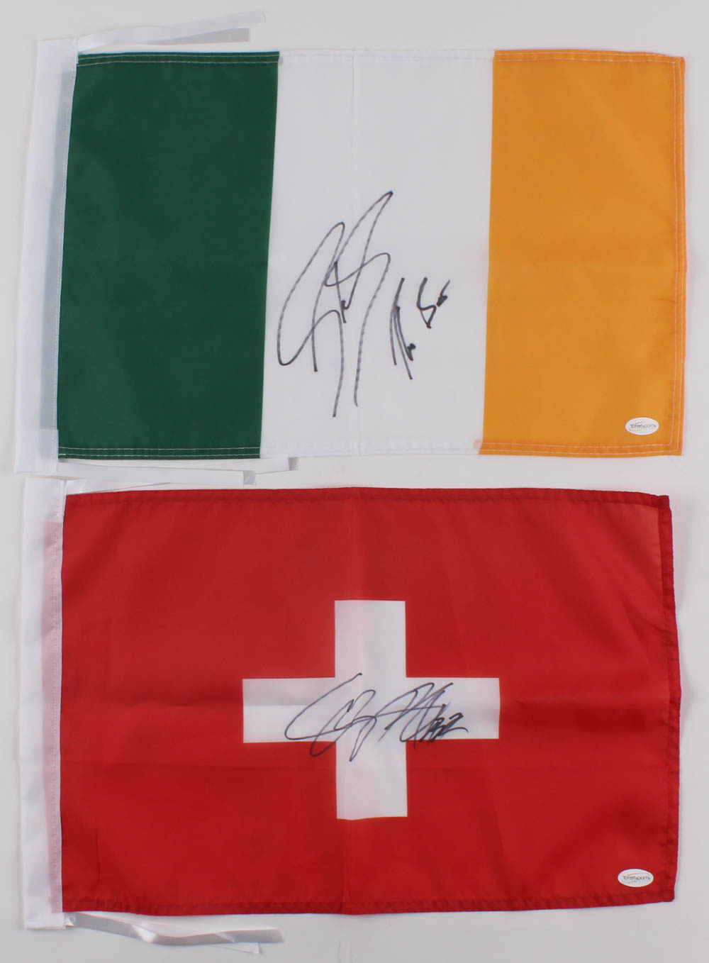 Lot of (2) Mini Flags with Sheamus Signed Ireland Flag & Cesaro Signed Switzerland Flag (TSE Hologram)