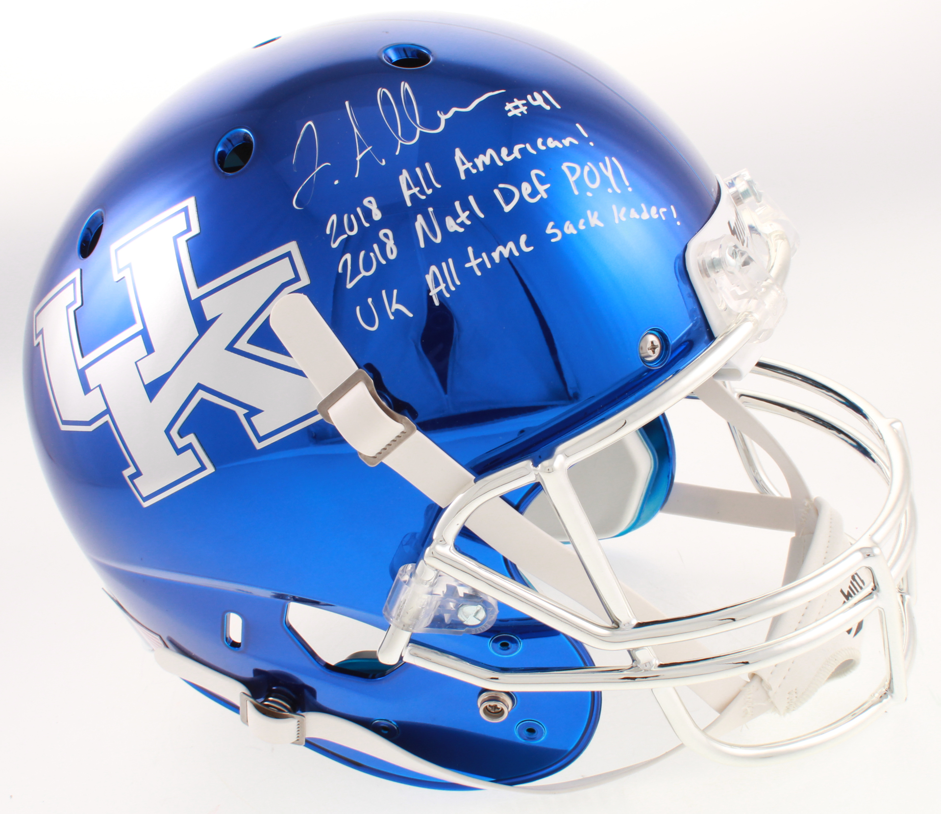 Schutt Kentucky Wildcats full-size chrome replica helmet. Hand-signed in white paint pen by Josh Allen.