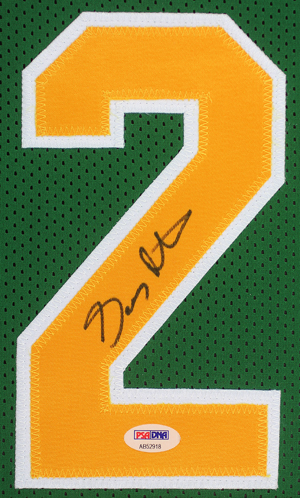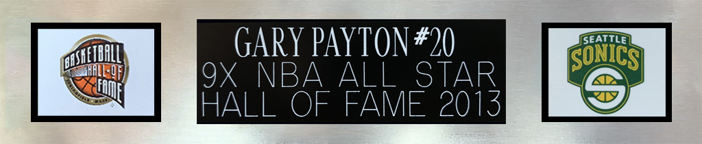 A beautifully framed autographed Gary Payton Seattle Sonics Jersey. The autograph was certified by PSA and includes a sticker on the Jersey and a matching certificate attached to the back of the frame.