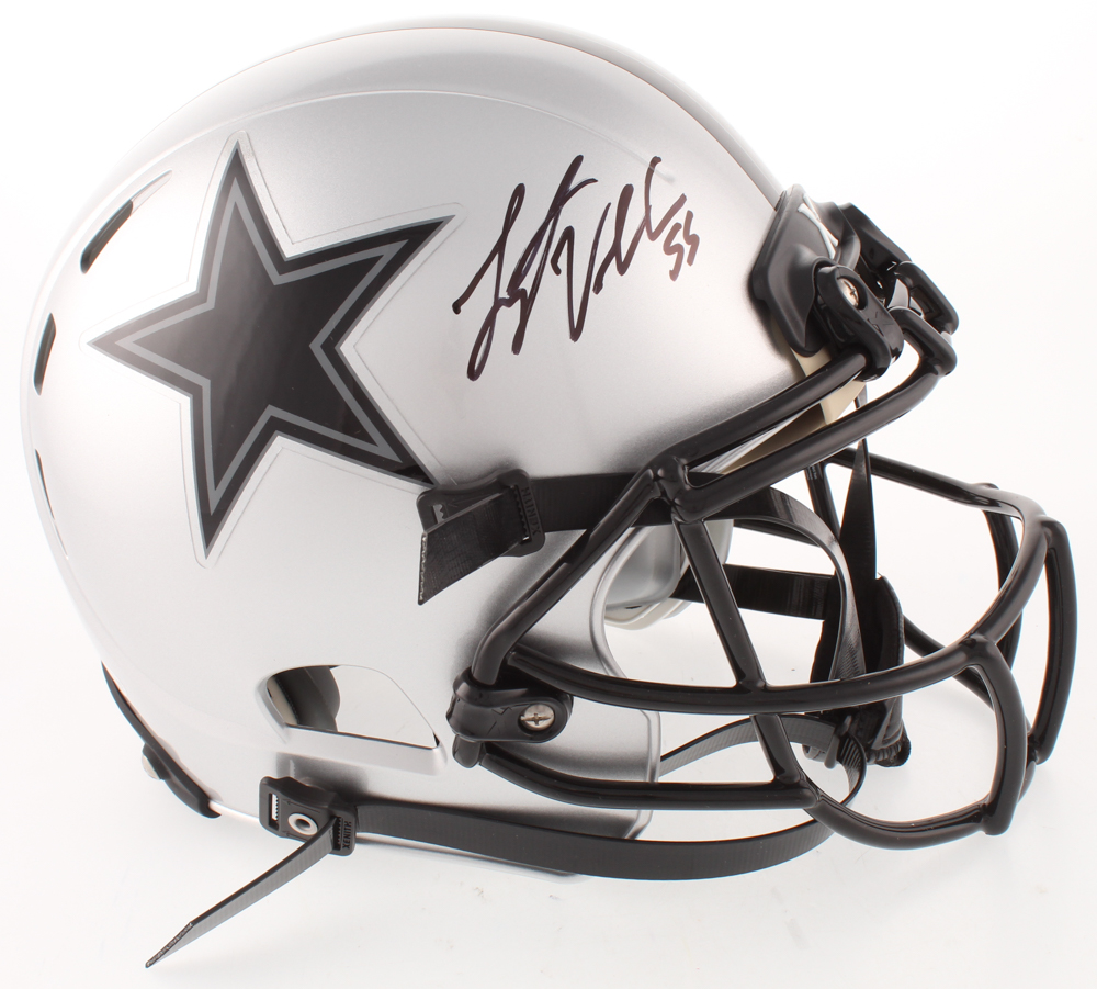 Xenith Dallas Cowboys full-size authentic on-field youth-sized helmet. Hand-signed in black felt-tip pen by Leighton Vander Esch.